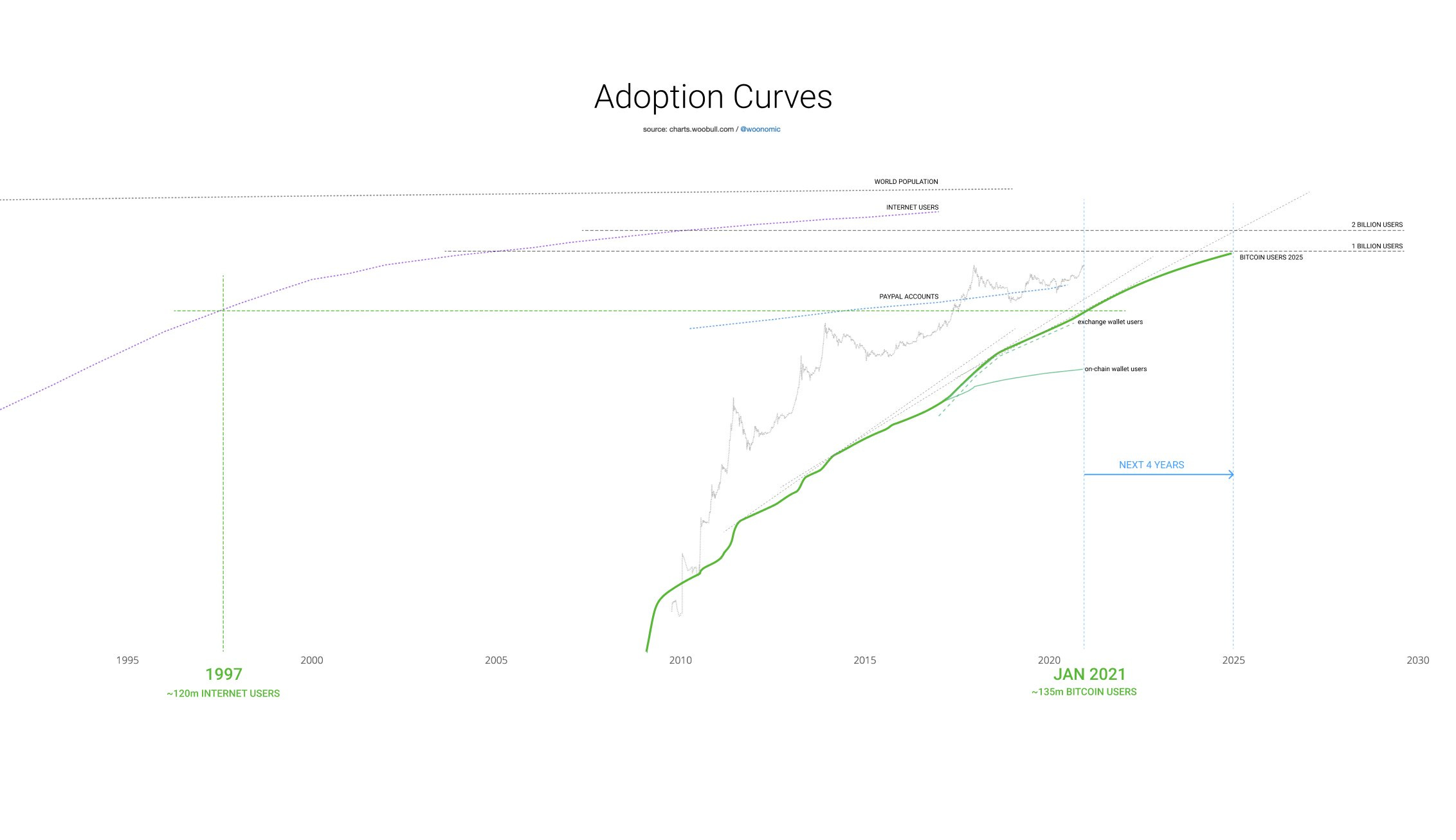 The chart projects Bitcoin user growth at 2025 to be around ~1b users, and if you extrapolate it further, very likely >2b users by 2030.